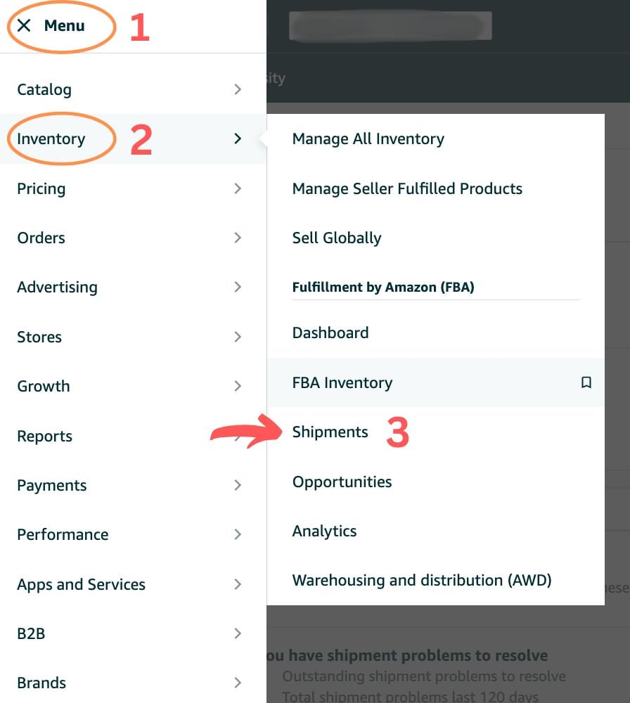 - Navigate to the hamburger menu, select Inventory > Shipments. From there, find the Shipments dropdown and select “Send to Amazon”. This will launch the shipment workflow.