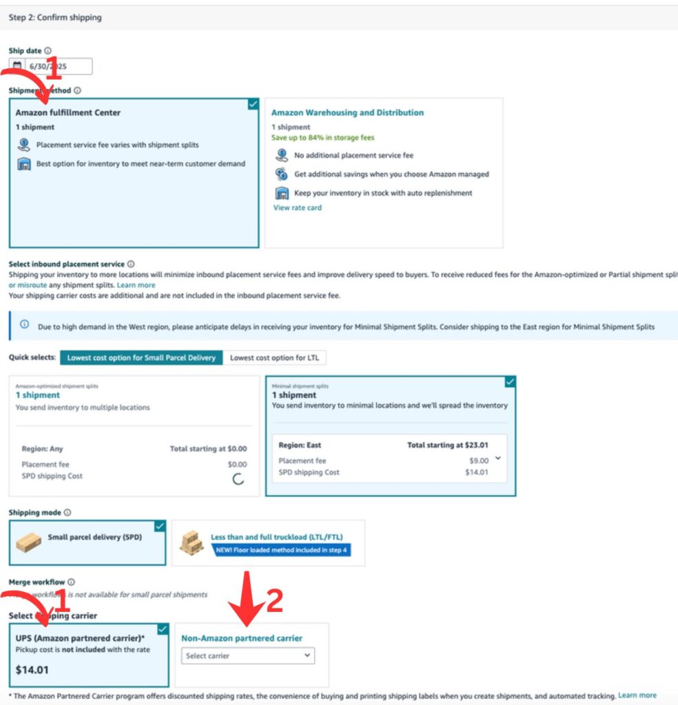 - Select whether you are shipping with an Amazon-partnered carrier (UPS, which is the most used option)